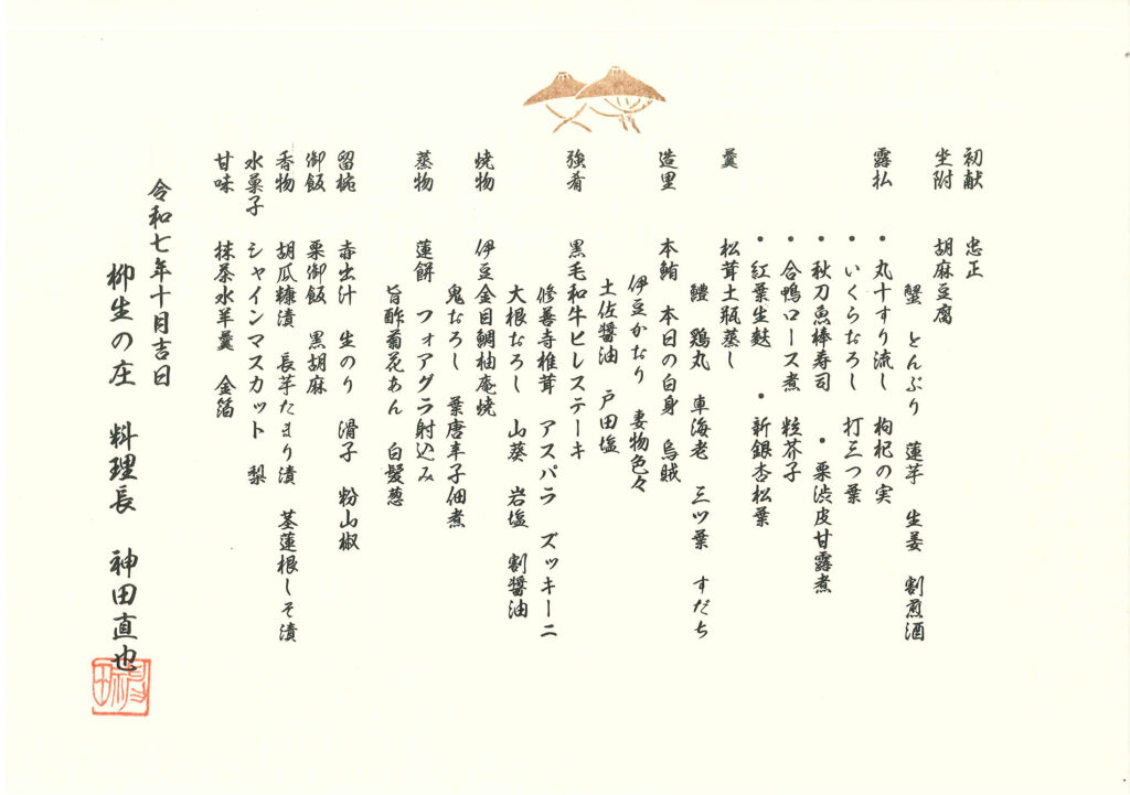 焼物は伊豆金目鯛柚庵焼、蒸物はフォアグラ射込みの蓮餅、