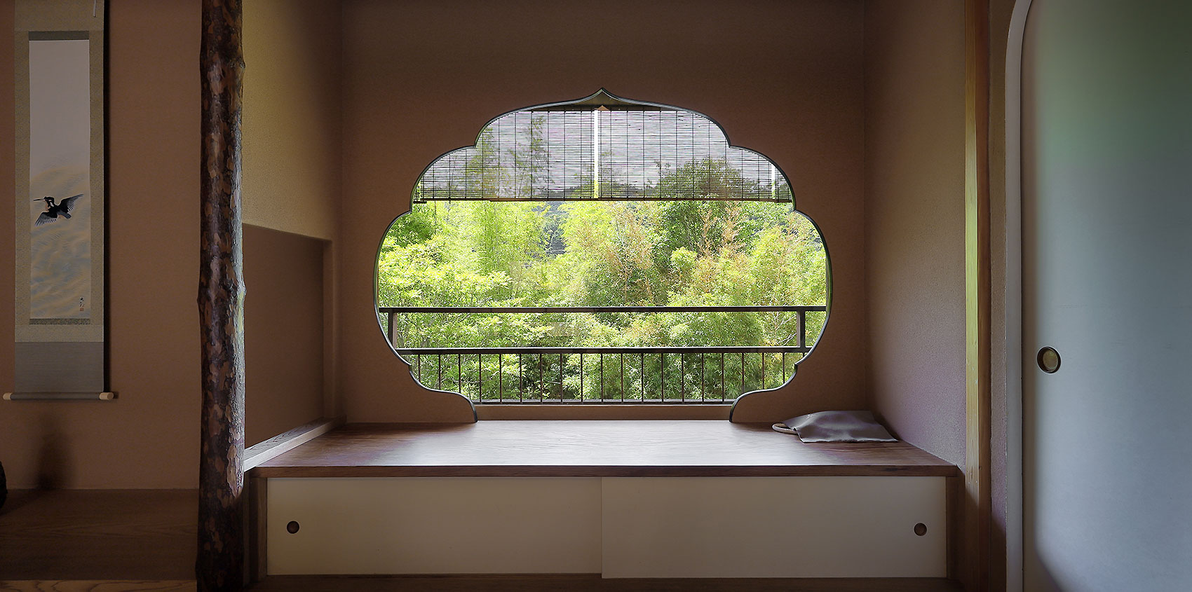 窓いっぱいにそよぐ竹林をお楽しみいただけるお部屋
